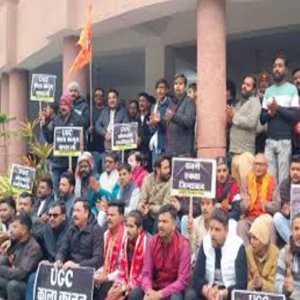 UGCRegulation – राजधानी लखनऊ में शनिवार को विश्वविद्यालय अनुदान आयोग से जुड़े प्रस्तावित नियमों के विरोध में अचानक प्रदर्शन तेज हो गया। सवर्ण मोर्चा के कार्यकर्ता तिरंगा लेकर सड़कों पर उतर आए और अपनी मांगों को लेकर आवाज उठाने लगे। देखते ही देखते प्रदर्शनकारी परिर्वतन चौक से गांधी प्रतिमा की ओर बढ़ने लगे, जिससे क्षेत्र में हलचल मच गई। प्रशासन को जैसे ही इसकी सूचना मिली, मौके पर अतिरिक्त पुलिस बल तैनात कर दिया गया।