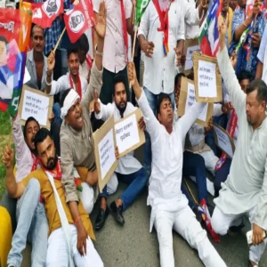 प्रदर्शन के दौरान नेताओं का तीखा हमला
